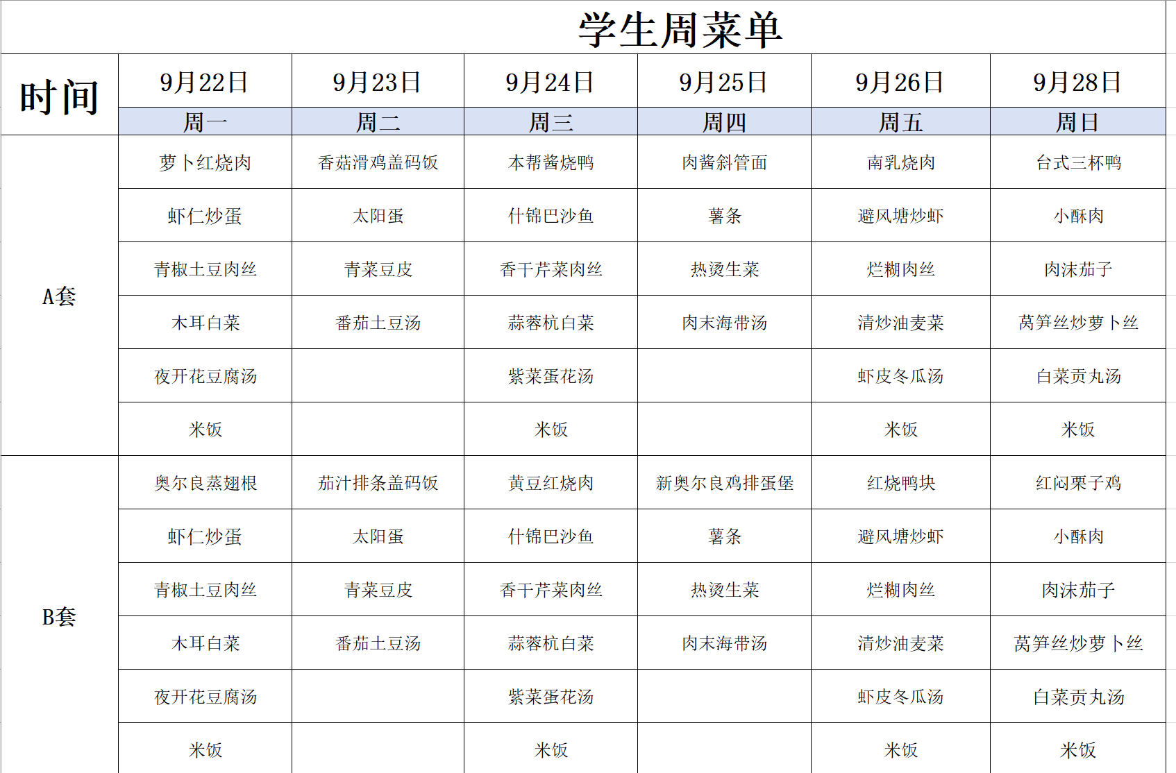 2025.9.22-9.28上海市零陵中学学生菜单(第四周)(高中)