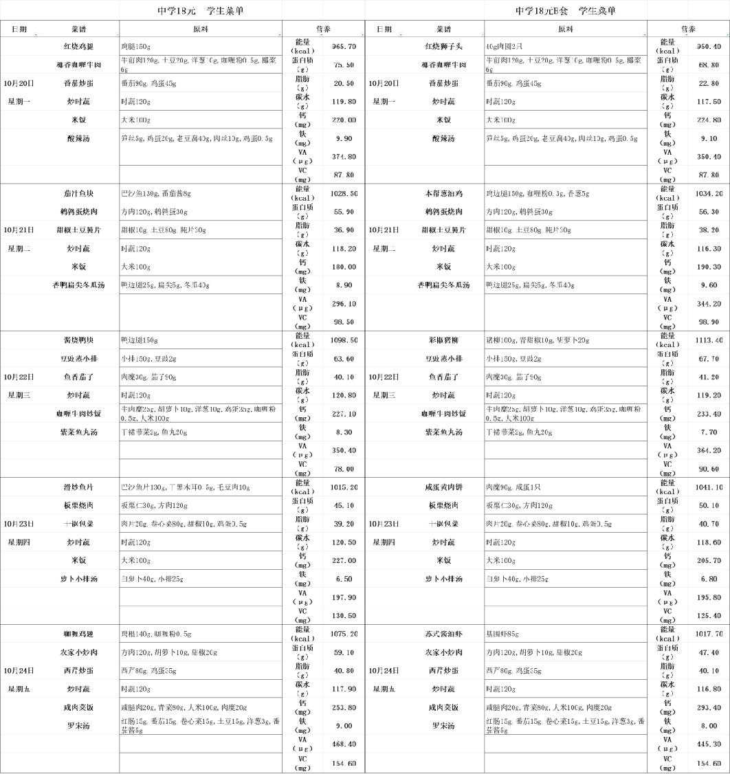 2025.10.9-10.11上海市零陵中学学生菜单(第六周)(高中)