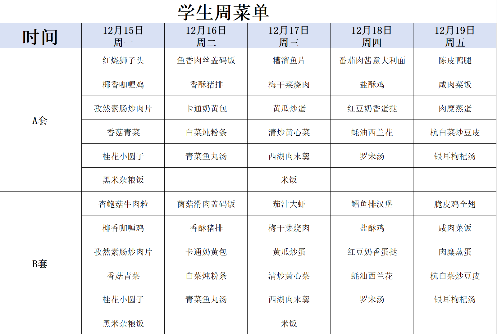 2025.12.8-12.12上海市零陵中学学生菜单(第十五周)(高中)