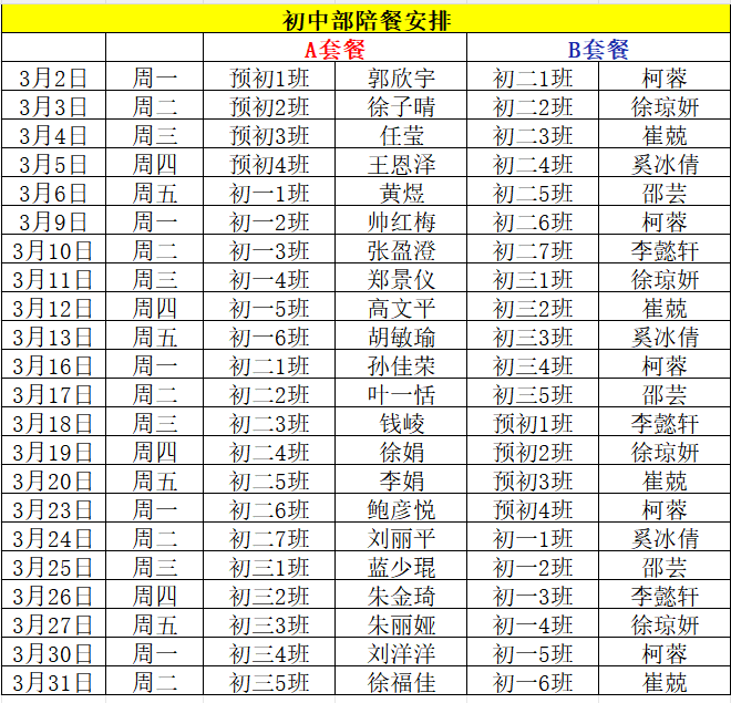 上海市零陵中学2026年3月陪餐安排(初中部)